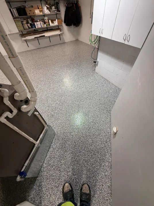 - Patio and outdoor surfaces: polyaspartic handles UV stability and slip resistance. Minnesota outdoor installations are scheduled seasonally around temperature requirements.